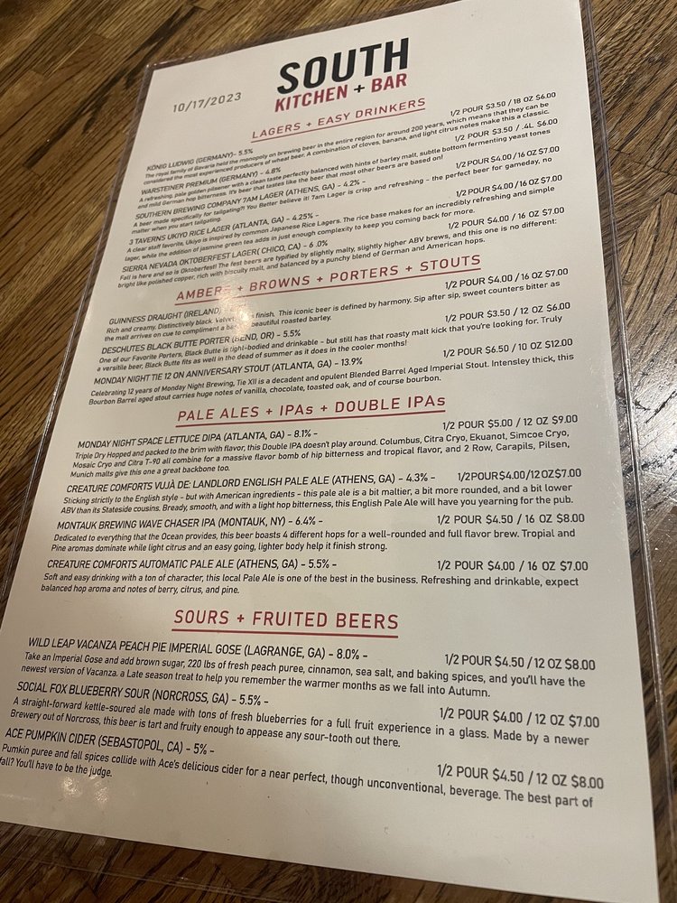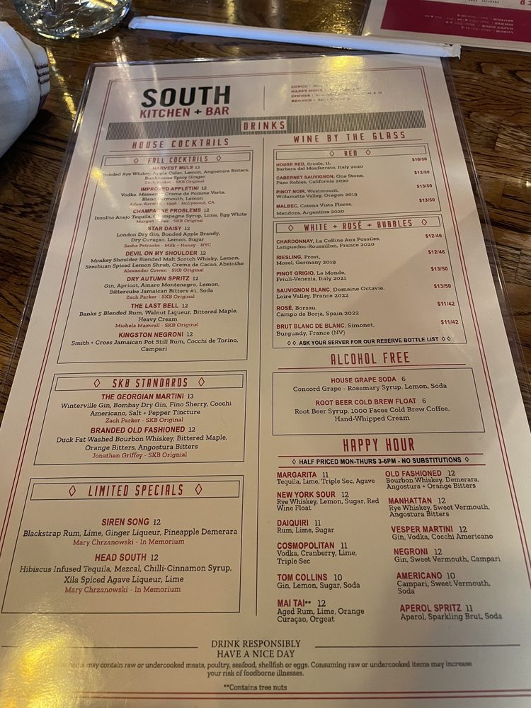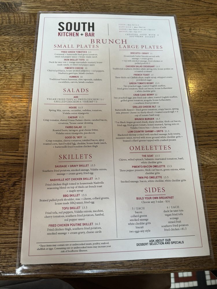 "South Kitchen + Bar" in Athens, GA offers a unique dining experience in the New American - Beer Bar category. With a range of amenities like vegan and vegetarian options, dog-friendly outdoor seating, and a full bar, this place caters to diverse preferences. Customers rave about the light, fluffy beignets, crispy duck fat tater tots, and delicious mimosas with perfect proportions. The casual yet upscale atmosphere, attentive service, and tasty offerings like goat cheese omelets, French toast, and seasonal cocktails make it a standout brunch spot. Guests appreciate the attention to detail in dishes like the Caesar salad with mouthwatering tater tots and exclaimed that they can't stop thinking about the flavors. With a promising menu filled with classic favorites done exceptionally well, "South Kitchen + Bar" is a must-visit destination for food enthusiasts looking for a memorable dining experience.